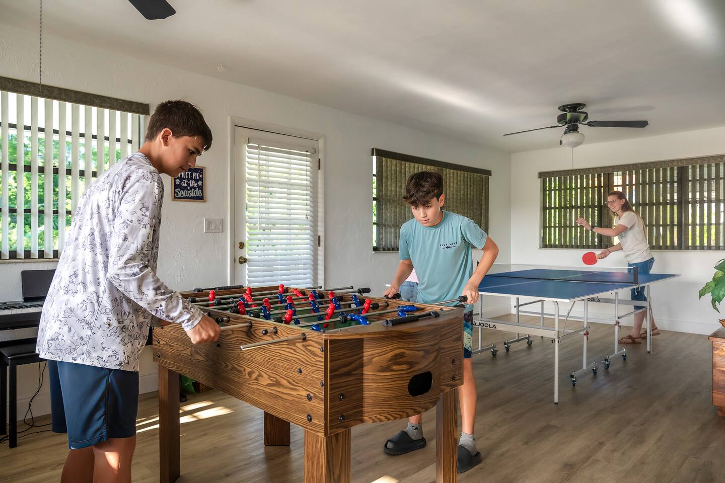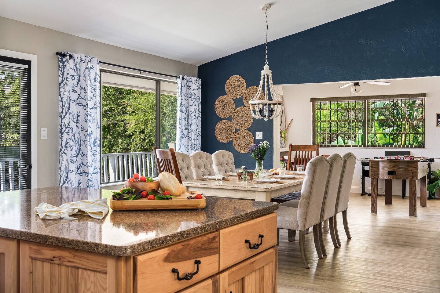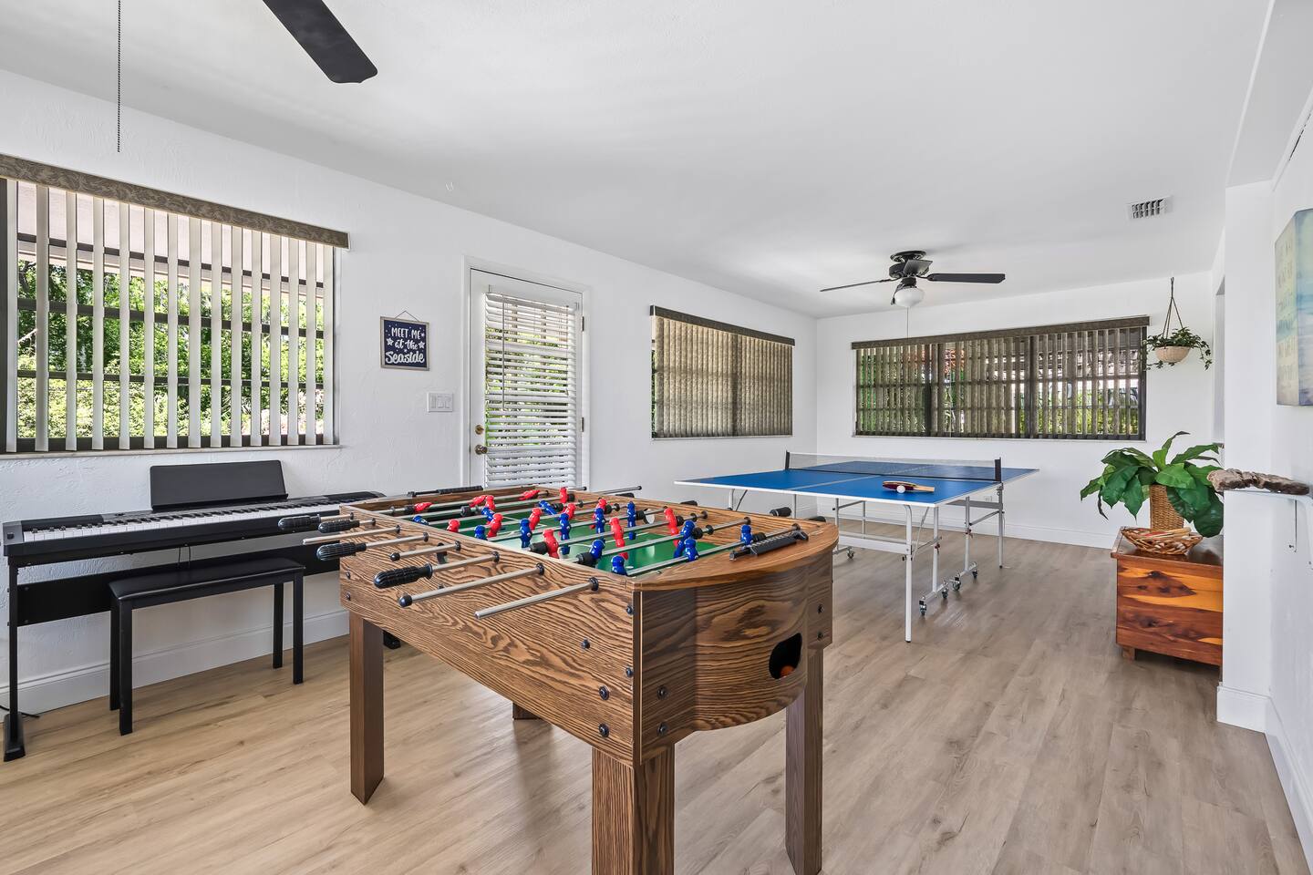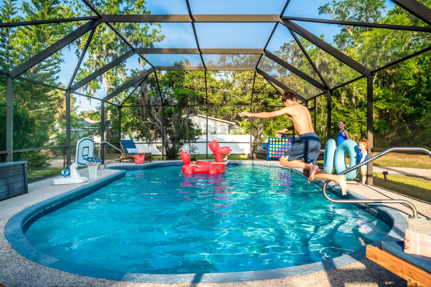 ๐ก The space * ๐๏ธ 5 bedrooms + 4 bathrooms (wheelchair accessible!) * โฟ Accessible layout with ADA-compliant bathrooms * ๐ค Sleeps large groups comfortably * ๐ฅ Dedicated movie theatre room for epic movie nights * ๐ฎ Game room with air hockey, ping pong, & foosball * ๐ Large collection of board games + books * ๐ป Dedicated workspace with high-speed Wi-Fi * ๐๏ธ Spacious, open-concept living and dining areas * ๐ฟ Serene wraparound porch for peaceful mornings โ๏ธ Outdoor amenities * ๐โโ๏ธ Outdoor pool with loungers and views of the pond * ๐ฝ๏ธ Outdoor dining area with BBQ grill * ๐๏ธ Outdoor living room set for cozy hangouts * ๐ฅ Fire pit for roasting marshmallows and sharing stories * ๐ถ Kayaks for a peaceful paddle on the pond * ๐ Lawn games + ๐ธ pickleball setup for group fun * ๐งบ Picnic tables + hammock for chill afternoons * ๐ 1-minute walk to private river access & small sandy beach ๐ฝ๏ธ Nearby restaurants * ๐ค Captainโs BBQ โ famous local spot with scenic views * ๐ Don Luigiโs Gourmet Kitchen โ top-rated Italian fare * ๐ฅ La Piazza Cafรฉ โ charming lakeside date-night spot * ๐ฅ Metro Diner โ hearty breakfasts + southern comfort * ๐ High Jackers Restaurant โ burgers, beers & family friendly ๐ Nearby activities * ๐ฅ๏ธ Rent boats or go paddleboarding nearby * ๐๏ธ Day trip to Flagler Beach or St. Augustineโs historic district * ๐ฌ Dolphin tours, fishing charters, and eco-cruises * โณ Golf courses within 15 minutes * ๐๏ธ Explore local farmers markets and craft shops * ๐๏ธ Scenic nature trails and riverfront picnic areas