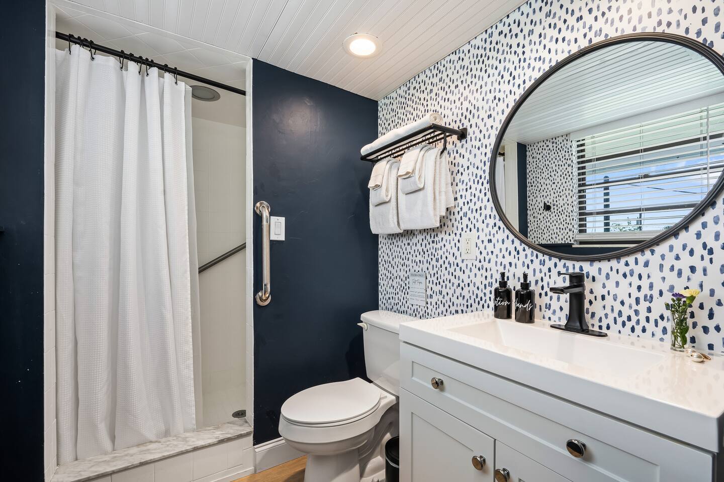 ๐ Highlights๐ ๐ก Private getaway on 1 acre of land ๐โโ๏ธ Outdoor pool + fire pit + BBQ area ๐ฅ Movie theatre room + epic game room ๐ถ Kayaks + pond + 1-min walk to private river beach ๐ Pickleball, lawn games, board games & books โฟ Wheelchair accessible with accessible bathrooms ๐ค 5 bedrooms, 4 bathrooms โ sleeps large groups ๐ Peaceful, nature-filled setting โ total privacy ๐พ Pet-friendly for your furry companions