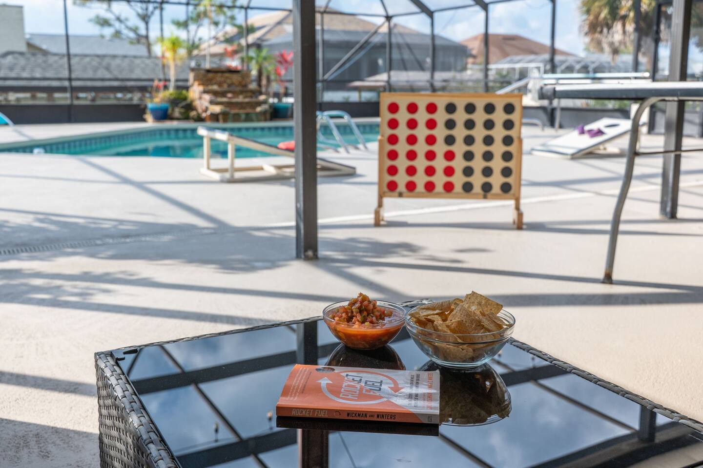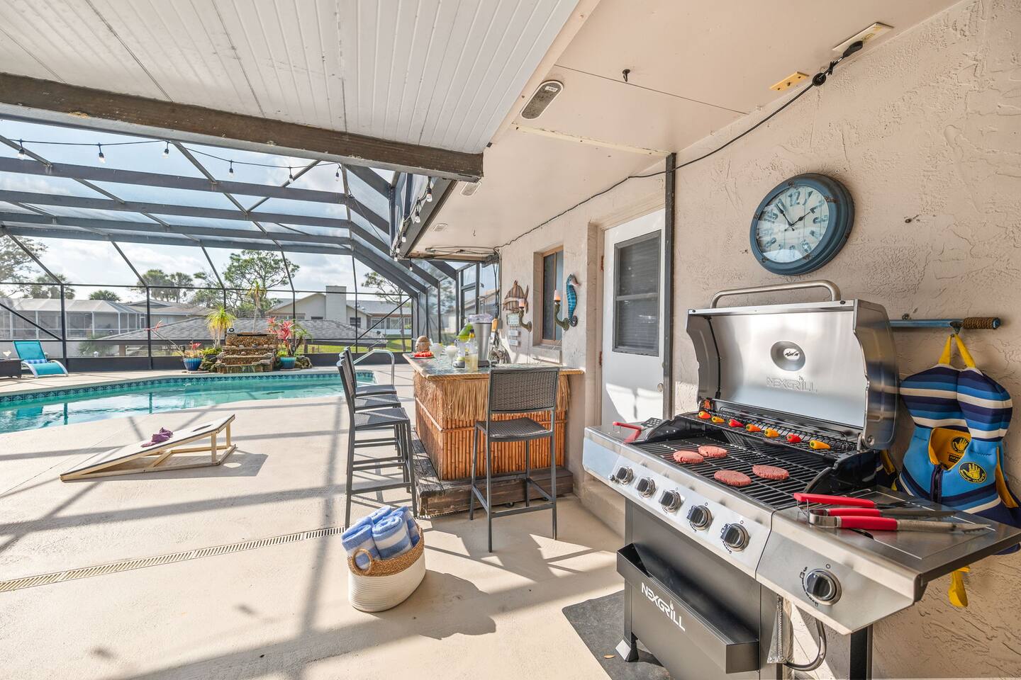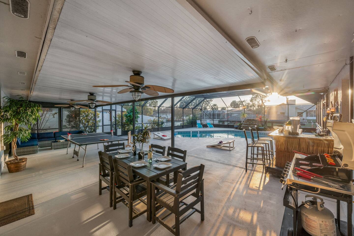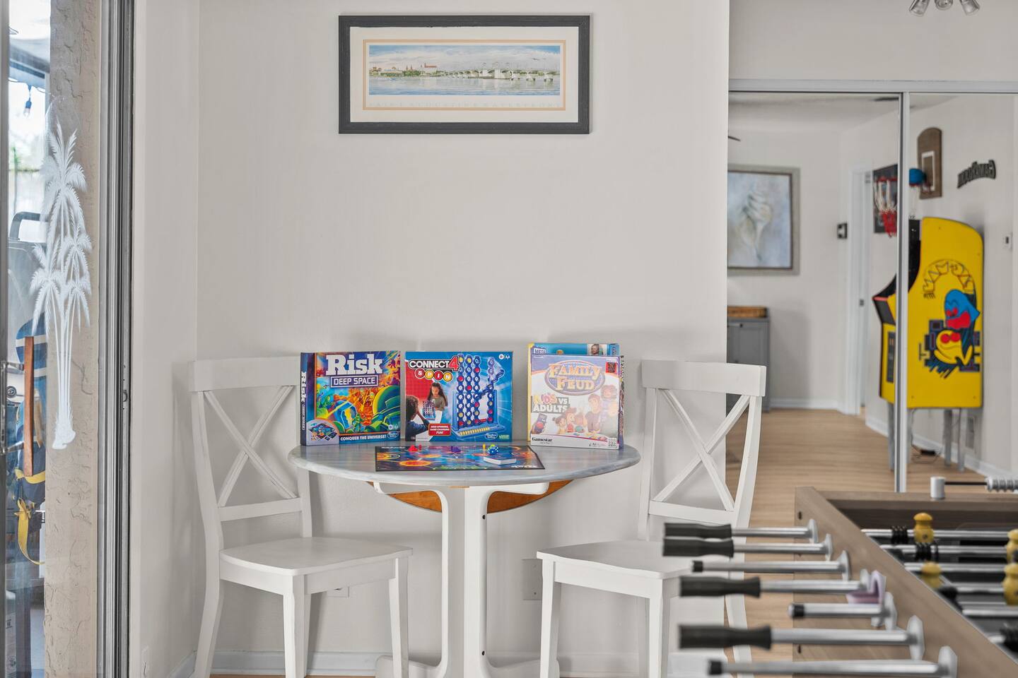 🌟 Home Highlights 🌊 Canal-front property with quick Intracoastal access 🚤 Under 30 seconds to the Intracoastal Waterway 🛶 Kayaks included – launch directly from the backyard 🍹 Tiki bar + margarita machine for poolside fun 🎮 Game room with arcade game 🏓 Outdoor ping pong table & foosball 🎲 Board games for all ages 🛏️ 3 bedrooms, 2 bathrooms – family-friendly layout 🌴 Massive backyard with plenty of space to relax 🎣 Perfect for fishing lovers & boaters 🛋️ Professionally designed with clean, modern coastal vibes 🚗 Driveway parking available 🛋️ More About the Space 🛋️ Bright living room with Smart TV and comfortable seating 🍳 Fully stocked kitchen with modern appliances 🍽️ Dining area ideal for family meals and game nights 🛏️ Primary bedroom with cozy bedding and modern finishes 🛌 Guest bedrooms designed for comfort and families 🎮 Game room and arcade setup for kids and adults 🍹 Backyard tiki bar and margarita machine for entertaining 🏓 Outdoor ping pong and foosball for nonstop fun 🛶 Canal access perfect for kayaking and fishing 📶 Fast Wi-Fi throughout the home 📍 Nearby Activities & Attractions ⭐ Crescent Watersports – boat rentals, dolphin tours & fishing charters (pickup available at the house) 🚤 Intracoastal Waterway – immediate boating access 🎣 Fishing directly from the canal 🚲 Lehigh Trail – biking, jogging & scenic walks 🏖️ Flagler Beach – pier, surf, dining & shops ⛳ Palm Harbor Golf Club – top-rated public course 🏖️ Jungle Hut Beach – quiet, scenic beach access 🌇 Historic St. Augustine – perfect day trip 🍽️ Top Local Restaurants 🍝 Osteria Rustica Italian — Upscale Italian dining with authentic flavors 🍖 Captain’s BBQ — Award-winning BBQ on the Intracoastal 🍽️ Atlantic Grille — Refined coastal cuisine with ocean views 🍺 Next Door Beach Bistro & Bar — Laid-back beachside dining and cocktails 🍤 Tortugas Kitchen & Bar — Seafood, tacos, and live music 🍳 Rodie’s Place — Local favorite for breakfast and brunch 🍕 Bronx House Pizza — Authentic New York–style pizza 🍩 Swillerbees Donuts — Gourmet donuts and great coffee 🔥 Pool Heating Policy Please Note: There is a $25 per day charge for heating the pool during the months of November through March. Pool heat must be requested in advance of arrival and will be charged for the full duration of the stay once activated. 🚤 Dock & Boat Slip Notice Please note that the dock is currently under repair. The dock is still usable for general access; however, it is warped at this time, and the boat slip is not functional. Guests may still enjoy the canal-front setting, kayaking, and water views, but boat docking at the slip is unavailable until repairs are completed.