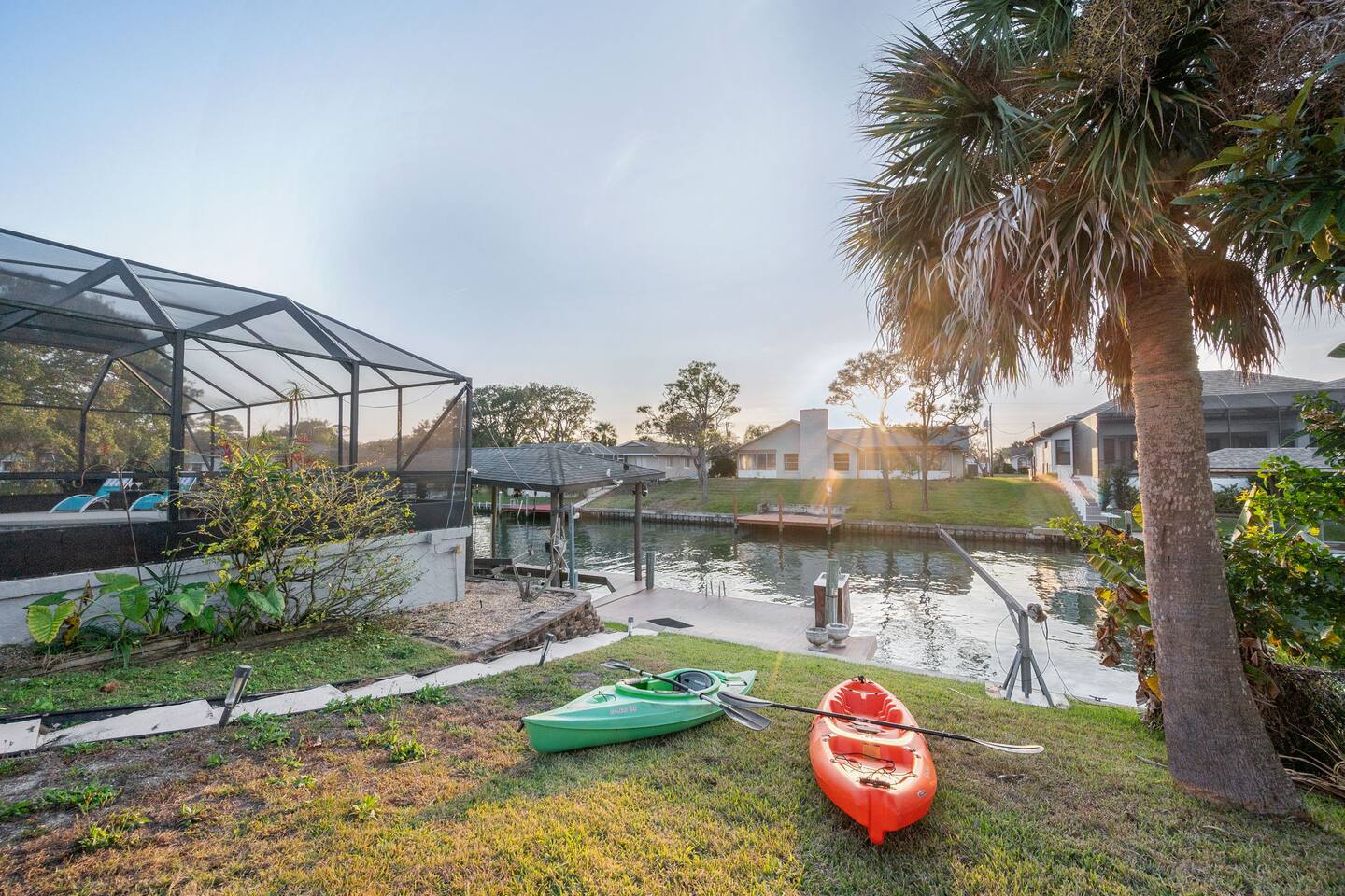 Guests have full access to the entire home, backyard, canalfront area, kayaks, and all amenities. Smart lock self check-in for easy arrival.