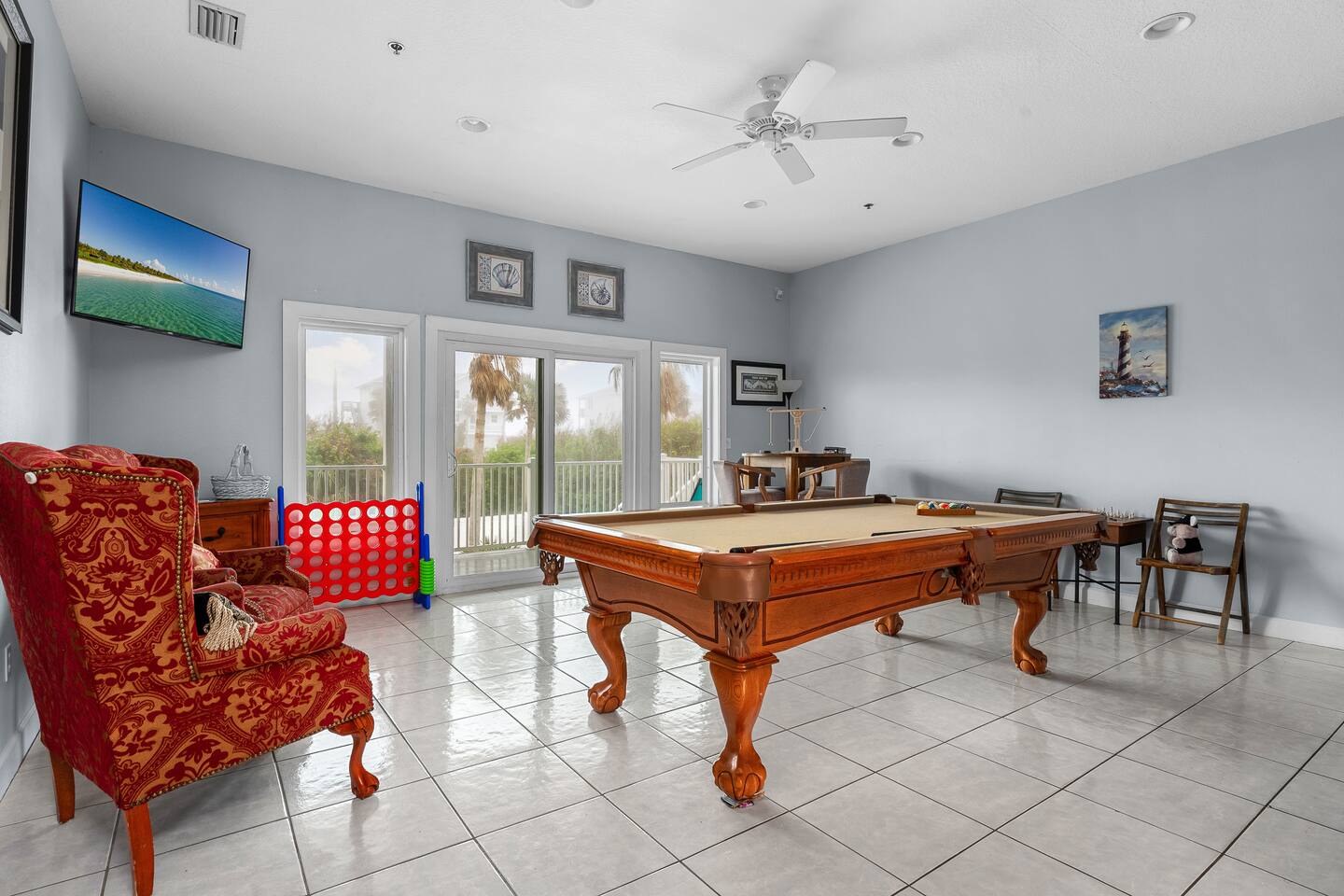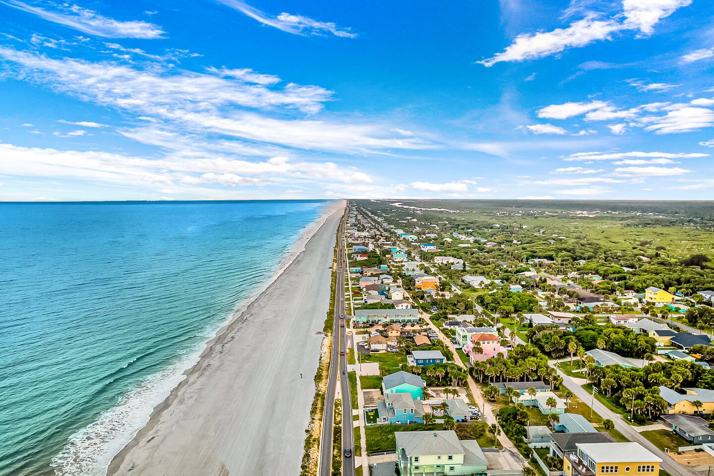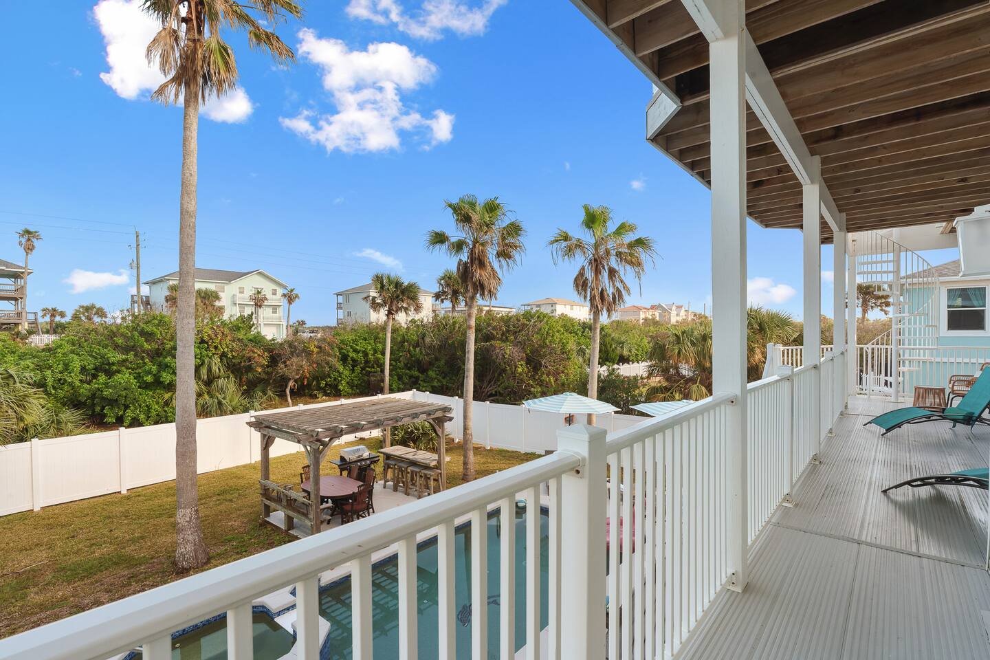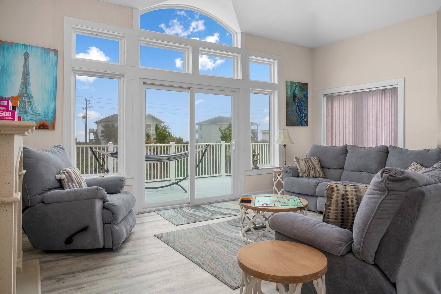 Experience luxury and relaxation at this 3-story vacation rental across from Flagler Beach, just a 5-minute drive to the Flagler Beach Pier and Boardwalk. Designed for family getaways, this home sleeps 14 and features king beds in every room plus a kids’ bunk room with a foosball table. Enjoy a private pool with basketball, a fire pit, a hammock, and a BBQ. Relax on two large balconies, or challenge the family to life-size games and pool. Your perfect Flagler Beach retreat awaits!