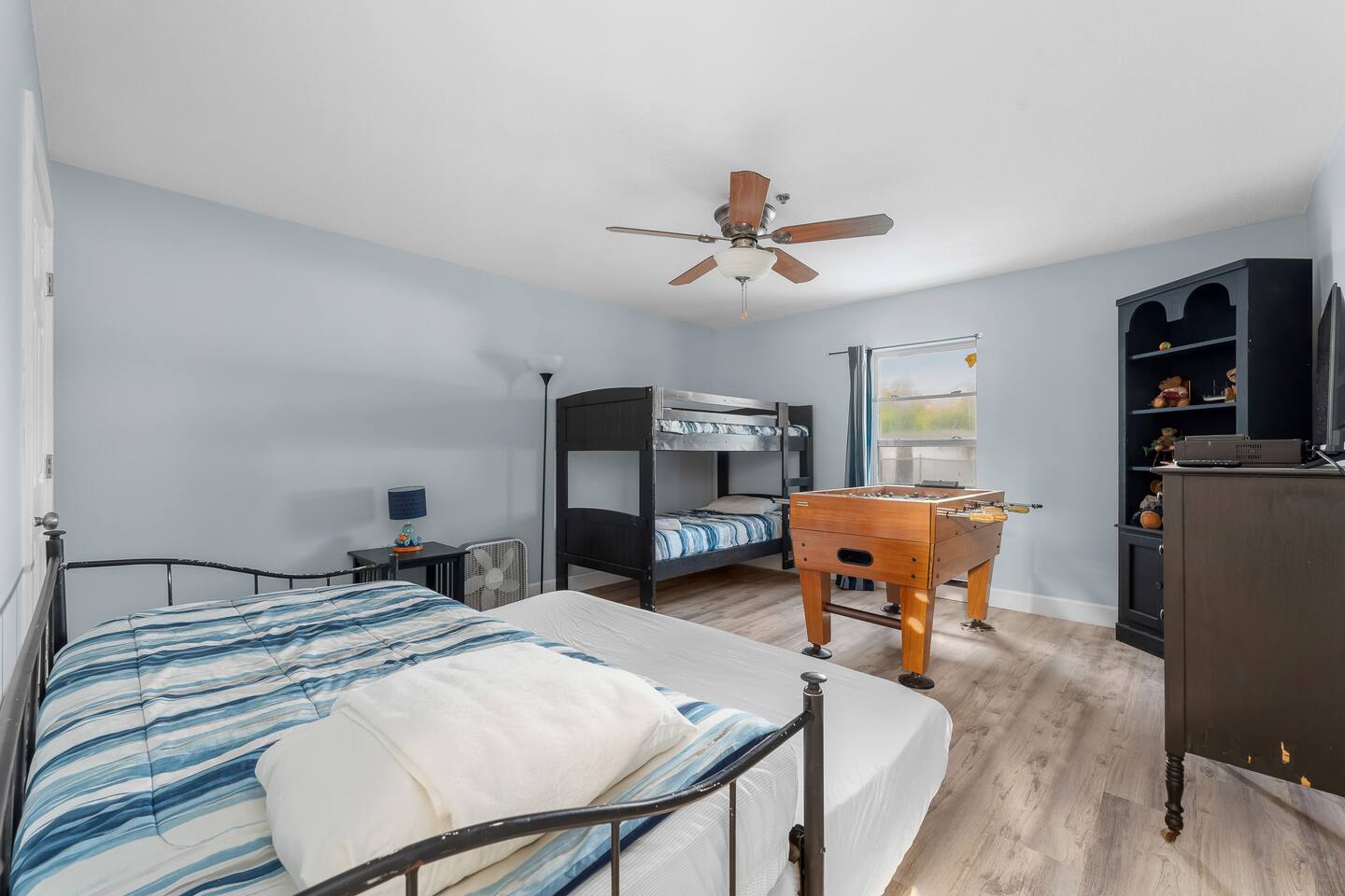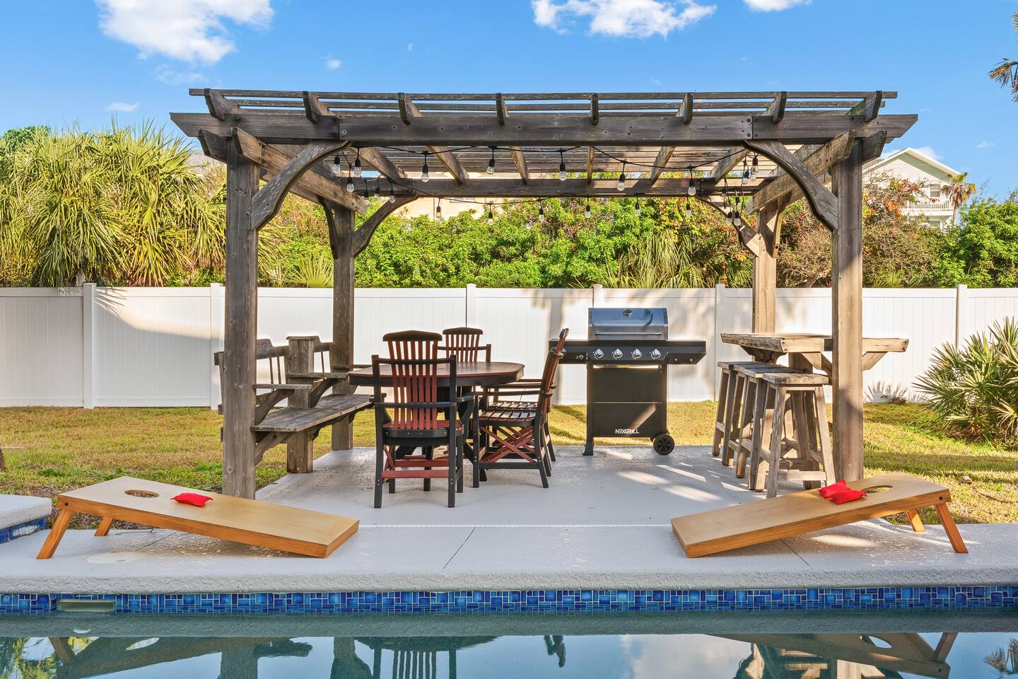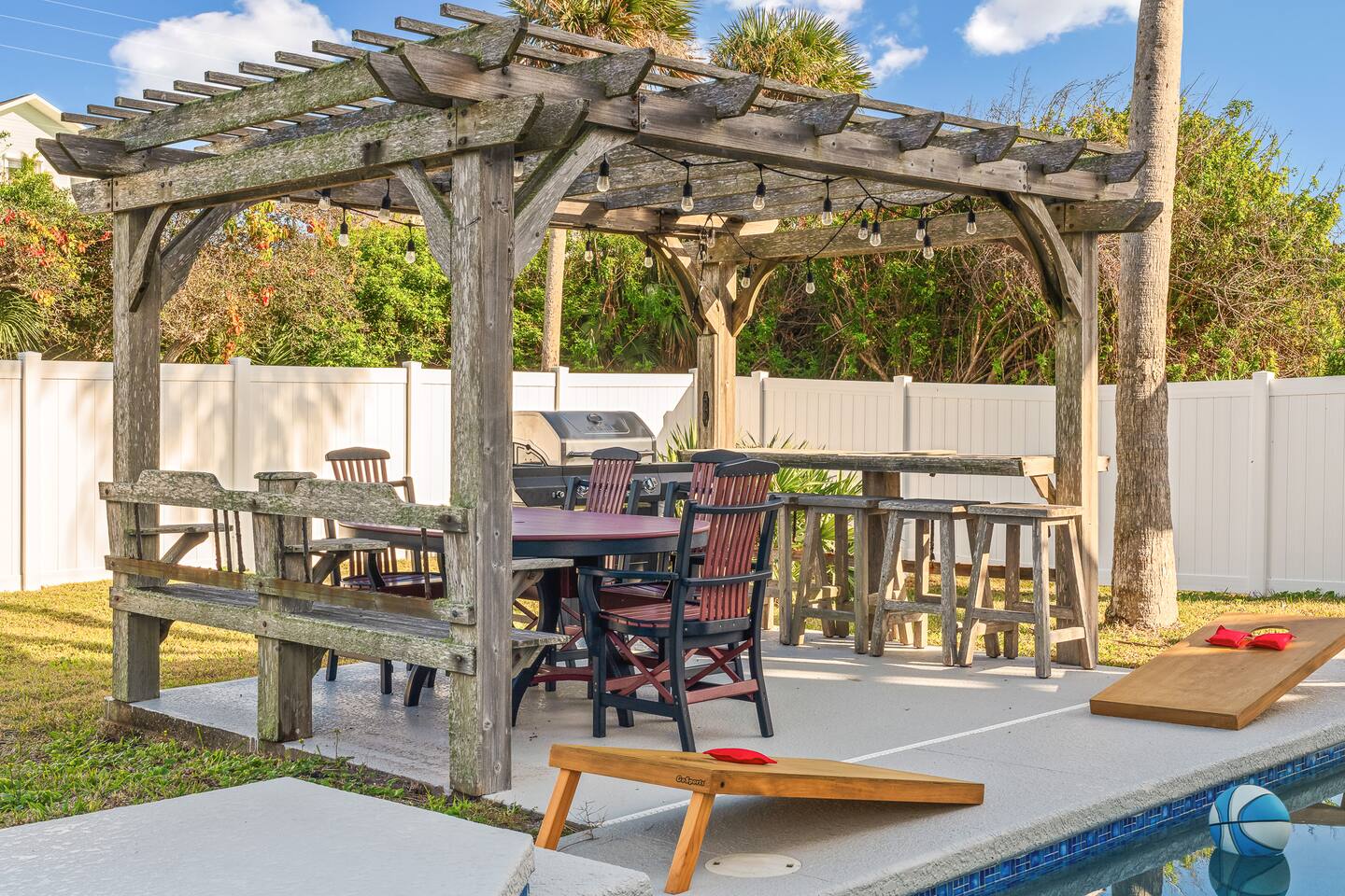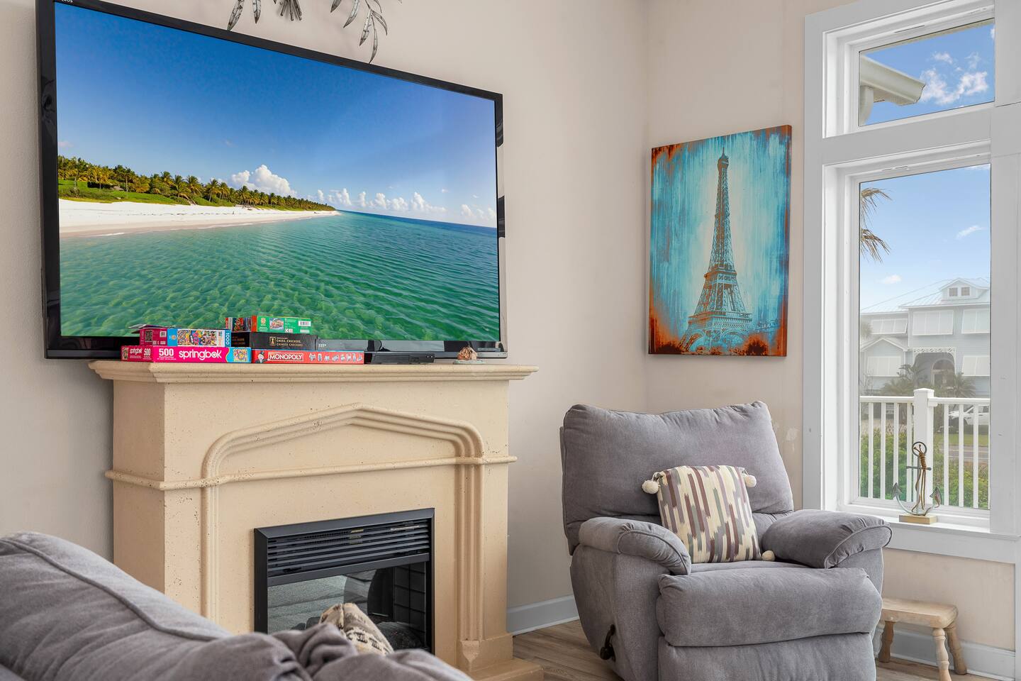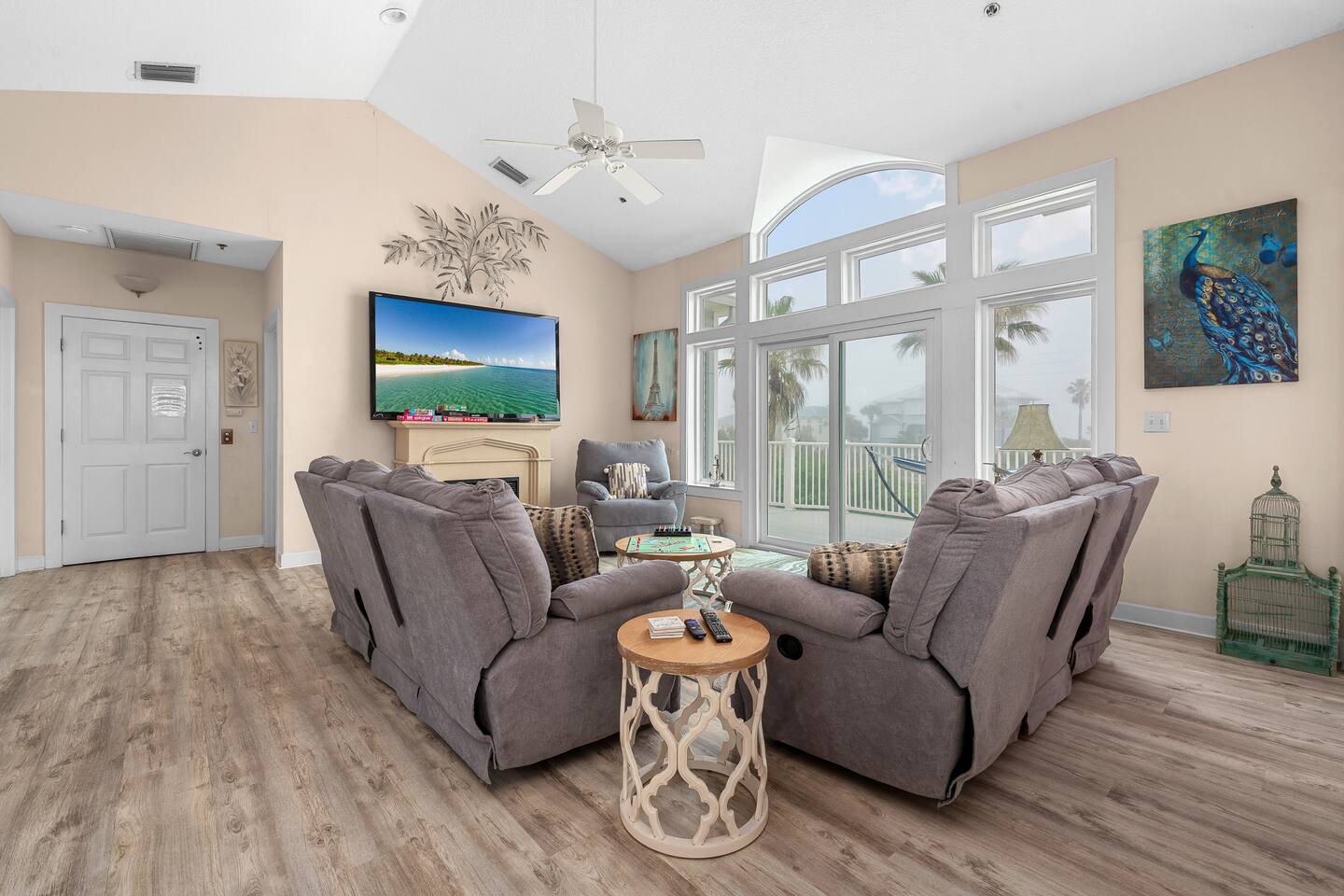 Experience luxury and relaxation at this 3-story vacation rental across from Flagler Beach, just a 5-minute drive to the Flagler Beach Pier and Boardwalk. Designed for family getaways, this home sleeps 14 and features king beds in every room plus a kids’ bunk room with a foosball table. Enjoy a private pool with basketball, a fire pit, a hammock, and a BBQ. Relax on two large balconies, or challenge the family to life-size games and pool. Your perfect Flagler Beach retreat awaits!