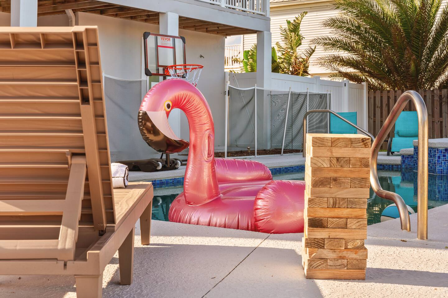 📋 **Other Details to Note** - The home is equipped with an elevator for convenient access to all three floors. - The pool is serviced regularly to ensure cleanliness and comfort. - Beach towels, linens, and starter toiletries are provided for your convenience. - Please note quiet hours from 10 PM to 8 AM to respect the neighbors. - The kids’ bunk room and game areas are perfect for family fun, but adult supervision is recommended. Pool & Spa: The system is fully automated, and the pool and spa stay heated throughout the day for your comfort. The spa heater operates on a seasonal schedule: during the colder season (October–February), it turns on at 3:00 PM, and during the warmer season (March–September), it turns on at 12:00 PM. The spa is heated to match the pool temperature but will not exceed it, and there are no bubbles. Please note that the spa only operates between 5:30 PM and 11:00 PM in winter, and 7:30 PM to 11:00 PM in summer—this is just how the system is set up. Let us know if you have any special requests or need anything during your stay! Please note: A $50 damage waiver fee per stay is already added and charged to your total payment. The property insurance for your stay is provided through Waivo and is applied to ensure coverage for any accidental damages during your visit. Please Note: There is a $25 per day charge for heating the pool during the months of November through End of March