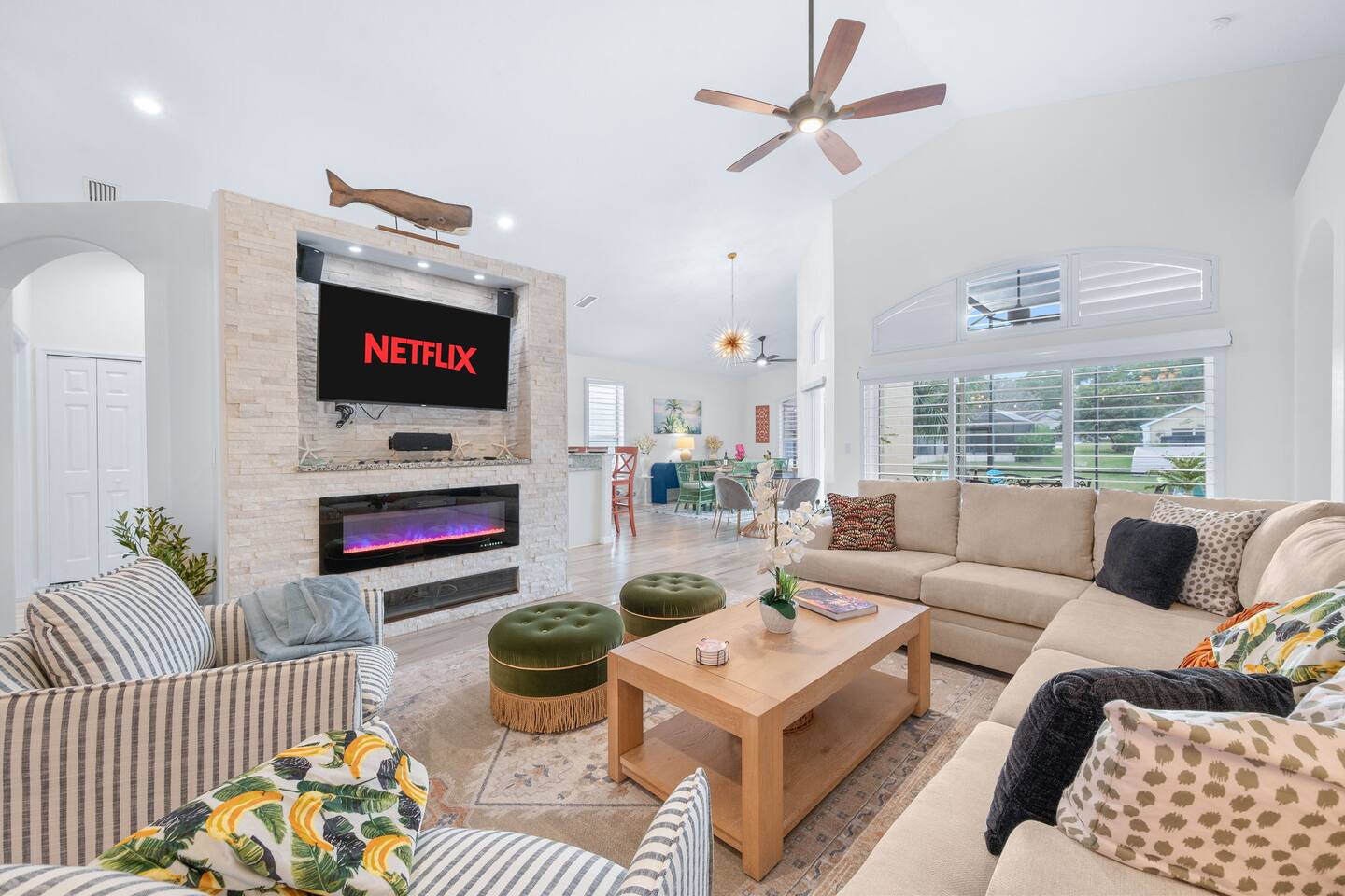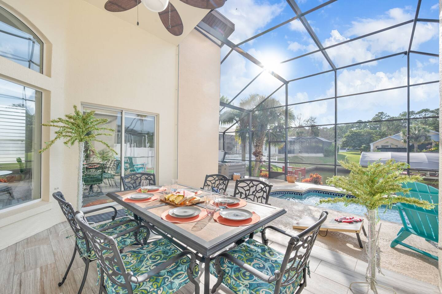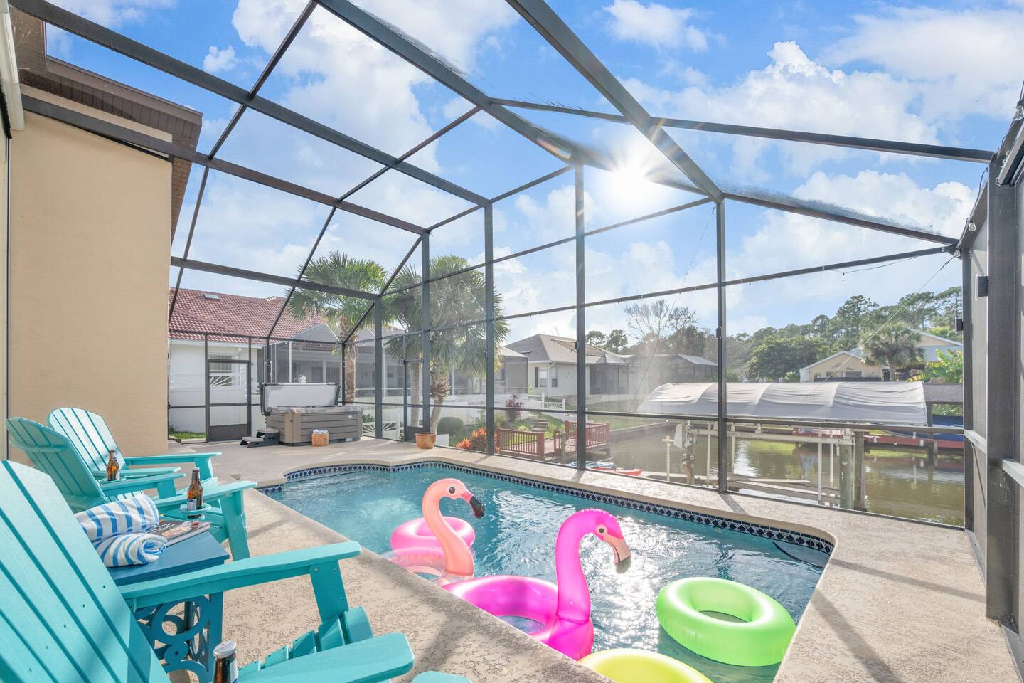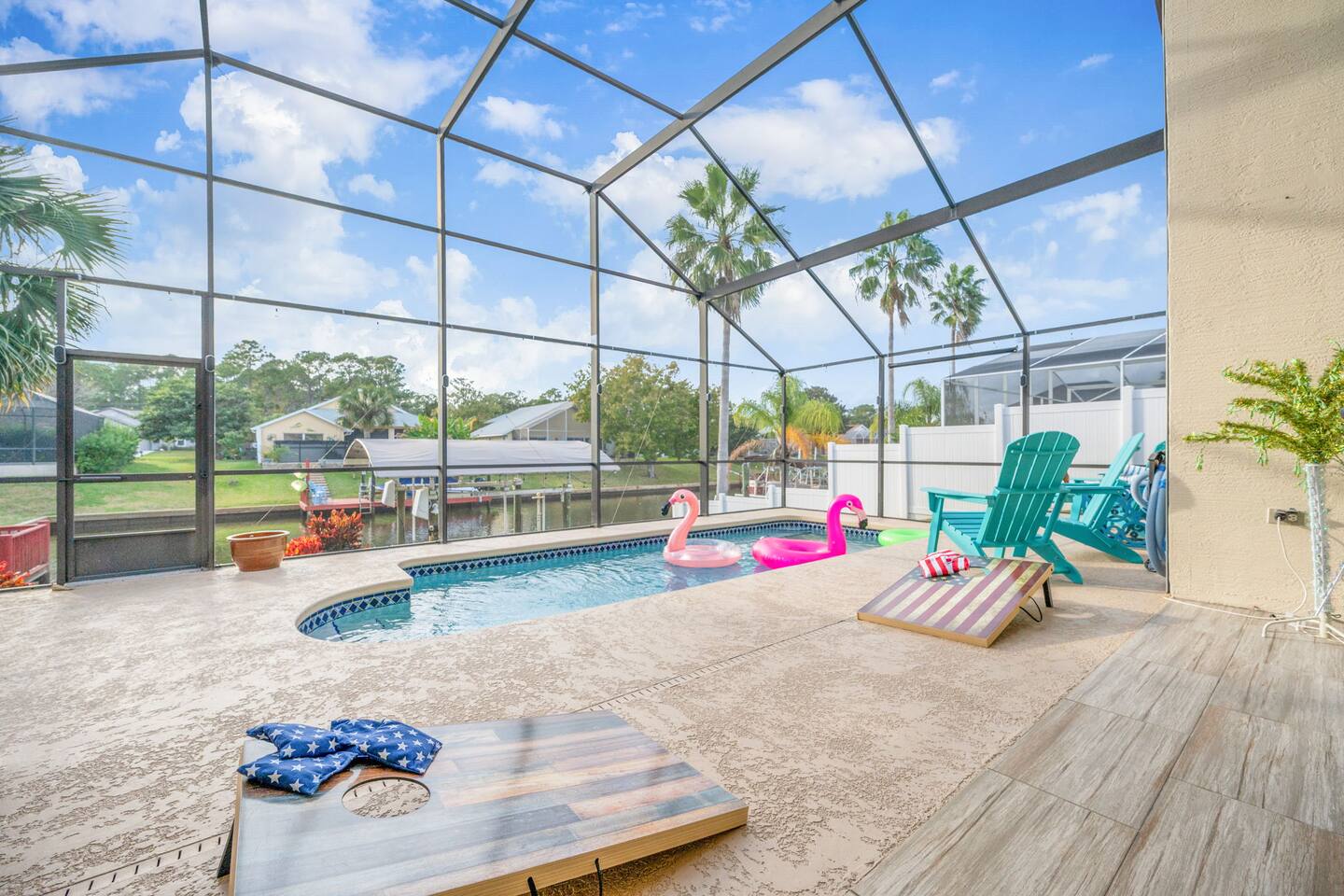 π Home Highlights π Canal-front property with peaceful water views πββοΈ Private pool + hot tub for year-round enjoyment π¬ Outdoor projector for backyard movie nights ποΈ Awesome bunk bed room perfect for kids π² Dedicated board game room/section for family fun ποΈ Professionally designed with modern coastal vibes π³ Fully stocked kitchen with modern appliances ποΈ 10 minutes to Flagler Beach β³ Close to golf courses including Palm Harbor Golf Club