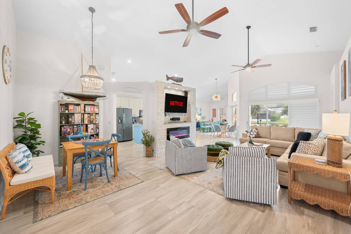 ποΈ More About the Space - Open-concept living room with Smart TV and stylish dΓ©cor - Fully equipped kitchen with everything needed to cook at home - Dining area perfect for family meals or game nights - Bunk room designed for kids with fun and comfort in mind - Primary bedroom with cozy bedding and modern finishes - Outdoor seating by the pool and hot tub - Backyard set up for relaxing evenings and movie nights - Fast Wi-Fi throughout the home π Nearby Activities & Attractions β Flagler Beach β pier, surf, dining & shops (10 min) π¬ Crescent Watersports β dolphin tours & fishing charters π² Lehigh Trail β biking, jogging & scenic walks β³ Palm Harbor Golf Club β top-rated public course ποΈ Jungle Hut Beach β quiet, scenic beach access ποΈ European Village β restaurants, boutiques & weekend events π Historic St. Augustine β perfect day trip (25 min) π£ Fishing, kayaking & boating nearby π½οΈ Top Local Restaurants π Osteria Rustica Italian β Upscale Italian dining π Captainβs BBQ β Award-winning BBQ on the Intracoastal π€ Tortugas Kitchen & Bar β Seafood & live music πΊ The Golden Lion CafΓ© β Oceanfront food & drinks π³ Rodieβs Place β Favorite breakfast & brunch spot π Bronx House Pizza β Authentic NY-style pizza π© Swillerbees β Gourmet donuts & local coffee