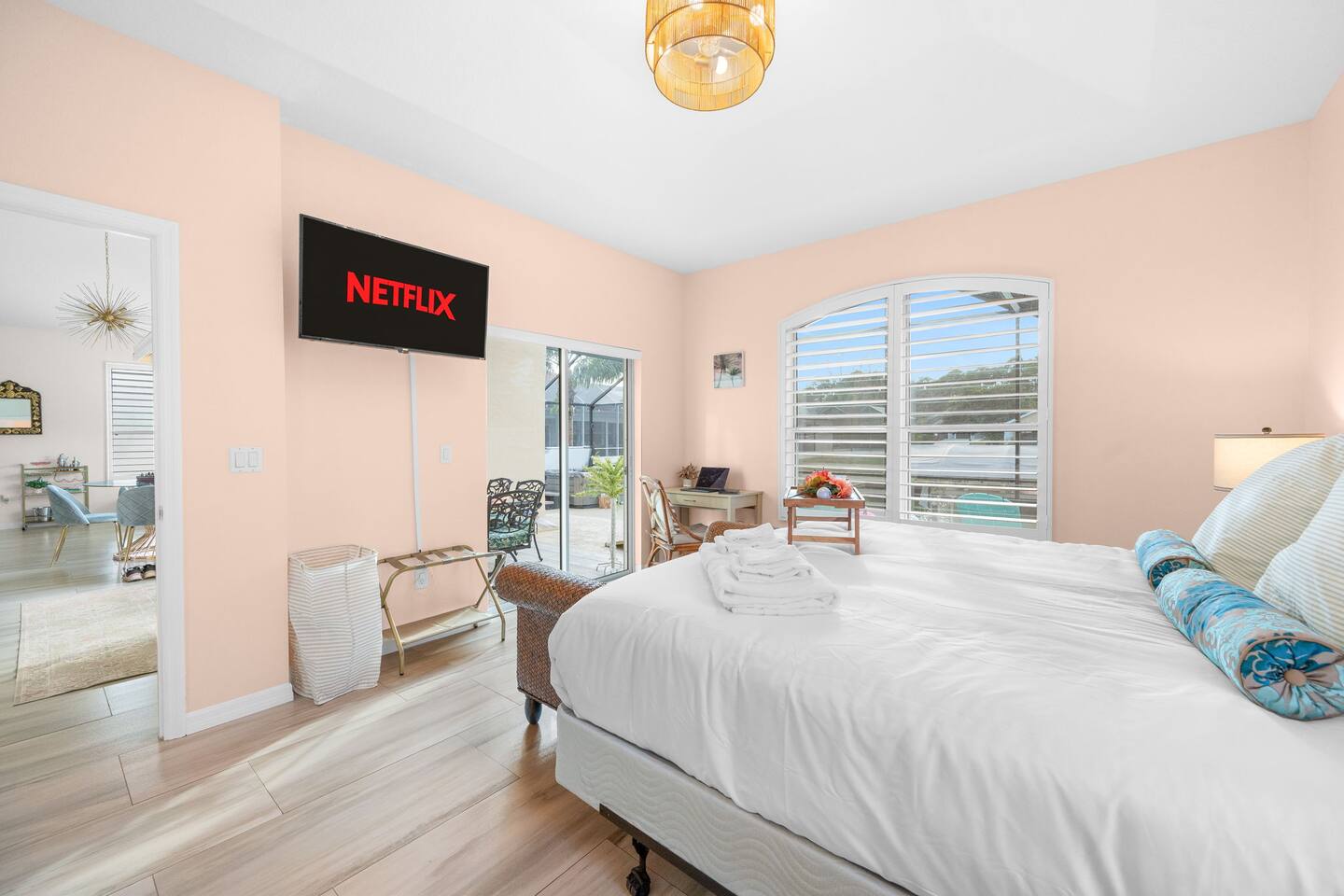 Guests have full access to the entire home, pool, hot tub, canal-front yard, and all amenities. Smart lock self check-in for easy arrival.
