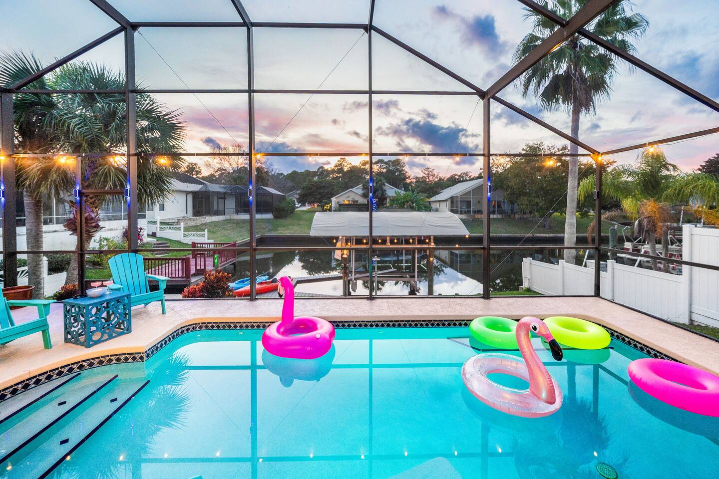 Located in a quiet, canal-front Palm Coast neighborhood close to beaches, golf, bike trails, and dining. Itβs peaceful, family-friendly, and perfectly located for exploring Palm Coast, Flagler Beach, and St. Augustine.