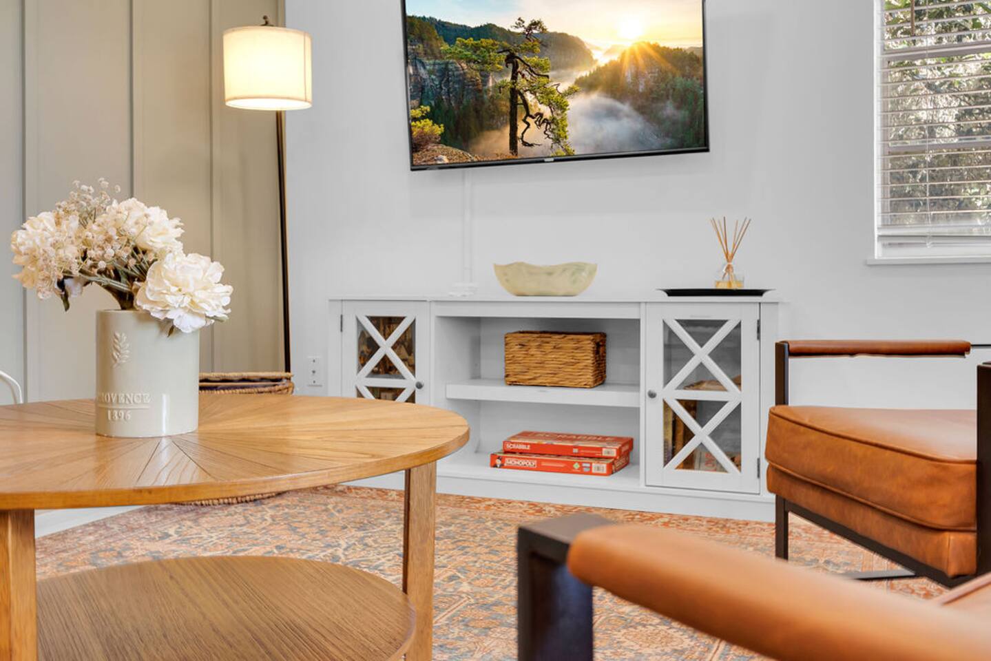 You’ll have private access to the entire guest house, your own dedicated hot tub, firepit, parking space, and full use of the shared lawn area with games and seating. Your unit has a separate smart lock code for secure and easy check-in.