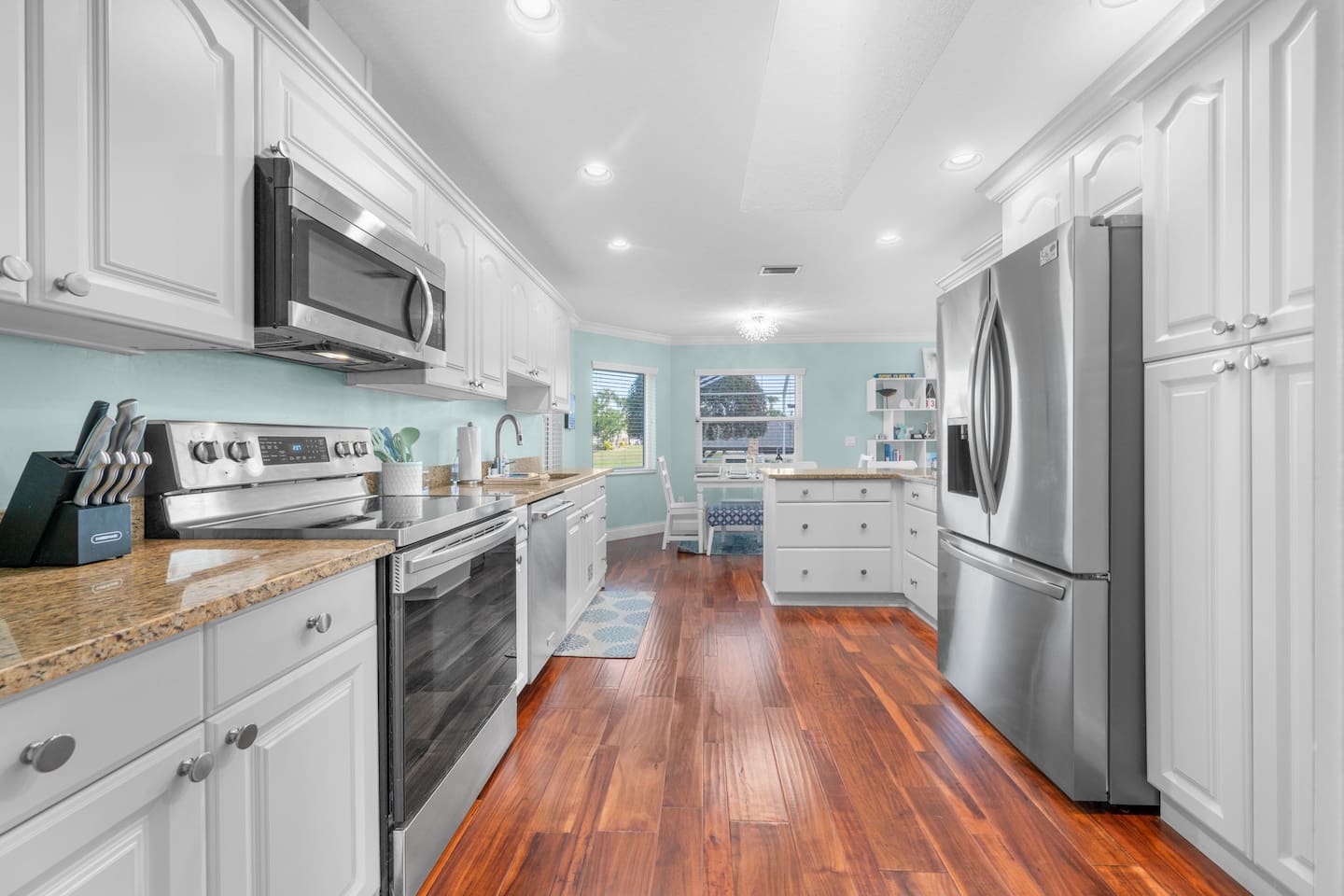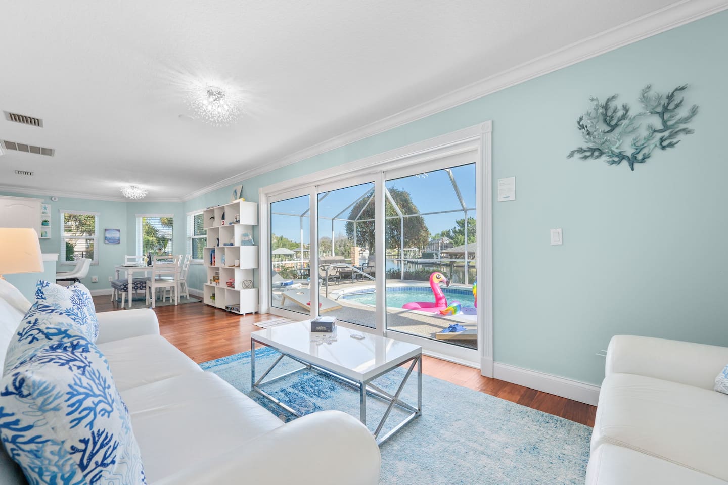 Guests have full access to the entire home, heated pool, dock, kayaks, and boat lift. Smart lock self check-in for easy arrival.