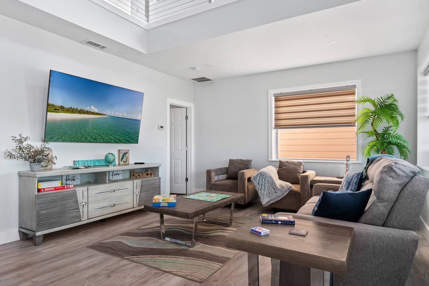 Welcome to your beachfront oasis in Flagler Beach! This newly renovated, 3-bed, 3.5-bath luxury home is perfect for small groups seeking a modern and serene retreat. Relax in the stylish living space or step out onto the front porch to catch breathtaking sunrises over the ocean. Located just a short stroll from the Flagler Beach Boardwalk, this home offers the perfect mix of relaxation and convenience. With family board games, a BBQ, and ample parking, your coastal getaway awaits!