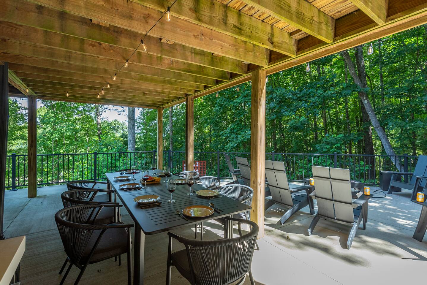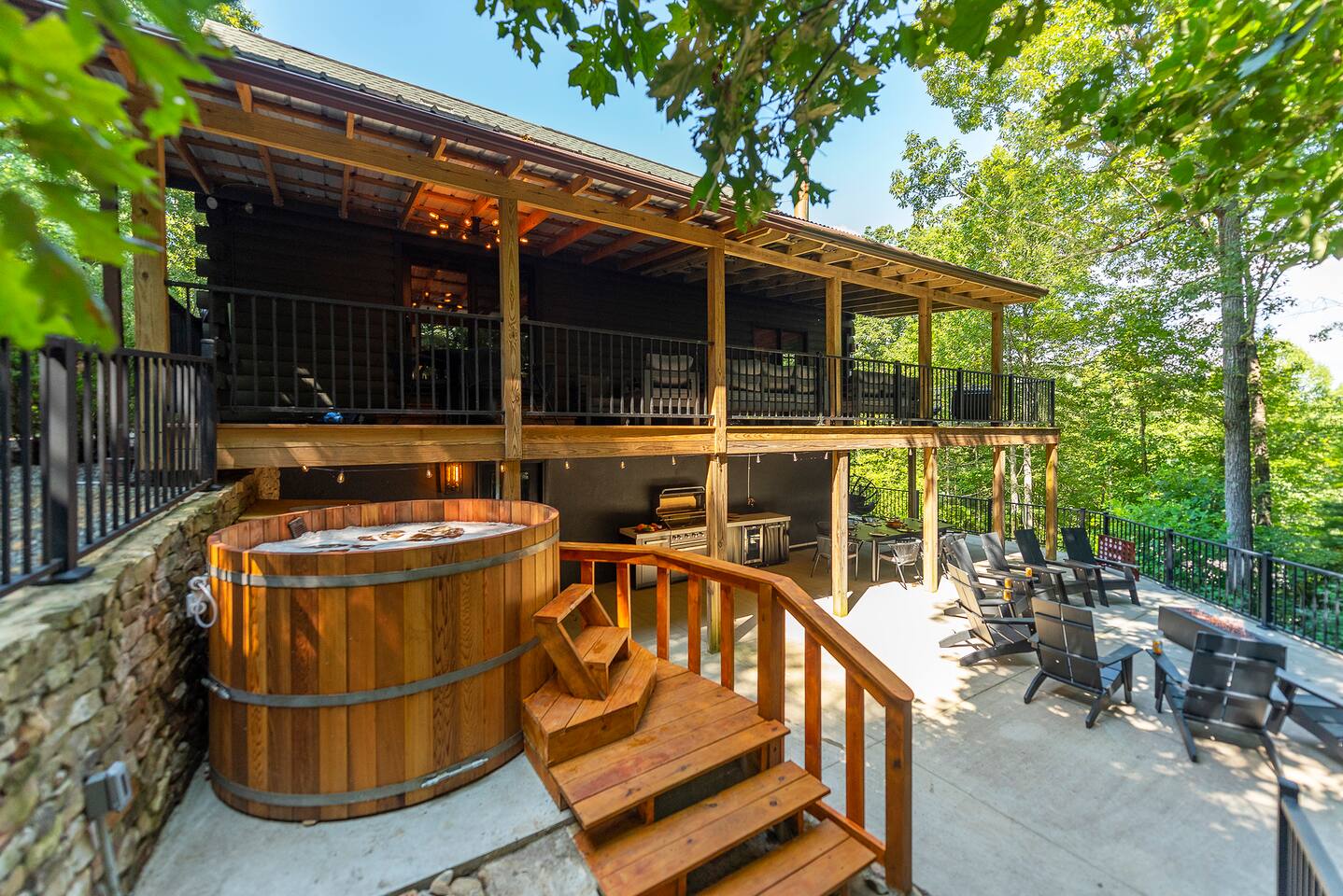 🌟 Welcome to Your Asheville Mountain Retreat 🌟 Key Features: 🛏️ 5 Spacious Bedrooms with King Beds: Retreat to comfort in generously-sized bedrooms, each featuring luxurious king-sized beds. 🧘 Private Yoga Treehouse Studio: Reconnect with nature in your very own yoga sanctuary nestled in the trees. 🛁 Medicinal Cedar Hot Tub for 8: Soak in the healing properties of cedar wood with space for up to 8 people, perfect for a relaxing group experience. 🌄 Breathtaking Mountain Views: Gaze upon the stunning vistas that surround this peaceful retreat. 🎱 Epic Game Room: Unleash your competitive spirit with pool, ping pong, large Connect 4, and more! 🏡 Massive 2-Story Deck: Lounge or dine while taking in panoramic views; perfect for sunrise coffee or sunset cocktails. 🍴 Outdoor Kitchen: Cook up a feast in the fully-equipped outdoor kitchen, perfect for alfresco dining. 🔊 Surround Sound Sonos System: Enjoy crystal-clear music throughout the home, creating the perfect ambiance for any occasion. 🍳 Fully Stocked Kitchen: Prepare gourmet meals in a kitchen equipped with everything you need, from top-of-the-line appliances to cookware and utensils. 🔥 Fire Pit Area: Gather around the fire pit for s'mores and storytelling under the stars. 🌲 Secluded Location: Enjoy peace and privacy, with easy access to nearby attractions and activities. Nearby Restaurants: 🍽️ Hubba Hubba Smokehouse: Savor mouthwatering BBQ in a casual, rustic setting. 🥘 Season's at Highland Lake: Delight in farm-to-table dining with a rotating seasonal menu. 🍕 West First Wood-Fired: Enjoy artisan wood-fired pizzas in nearby Hendersonville. 🍺 Sierra Nevada Brewing Co.: Grab a craft brew and bites at this popular brewery with an expansive outdoor space. Nearby Activities: 🚶♂️ Hiking: Explore the nearby trails, including the picturesque DuPont State Forest. 🏞️ Pisgah National Forest: Perfect for hiking, mountain biking, and discovering waterfalls. 🚴 Biking: Hit the Blue Ridge Parkway for scenic cycling routes. 🌊 French Broad River: Enjoy kayaking, canoeing, or tubing on this beautiful river. ⛷️ Winter Sports: Visit nearby ski resorts for snowboarding and skiing in the colder months. 🛍️ Downtown Hendersonville: Explore quaint shops, art galleries, and local eateries in this charming town. Imagine yourself escaping to the serene mountains where every detail is designed with your ultimate relaxation in mind. Picture waking up in one of the five spacious bedrooms, each with a luxurious king-sized bed, and stepping out onto the massive 2-story deck to sip your morning coffee while taking in breathtaking mountain views. Start your day with a peaceful yoga session in the private treehouse studio, or gather your friends for a soak in the medicinal cedar hot tub, which comfortably fits up to 8 people. The fully stocked kitchen and outdoor kitchen are perfect for cooking up memorable meals, while the epic game room offers endless entertainment with pool, ping pong, and more. As your favorite music plays throughout the home on the Sonos surround sound system, you’ll feel right at home. In the evenings, gather around the fire pit under the stars, sharing stories and s’mores. This mountain retreat is your private oasis, yet it's close to incredible hiking trails, the French Broad River, and delicious local restaurants. Whether you're seeking adventure or just a peaceful place to unwind, this home offers the perfect setting for your next getaway. Book your stay today and discover the comfort and charm that awaits you!