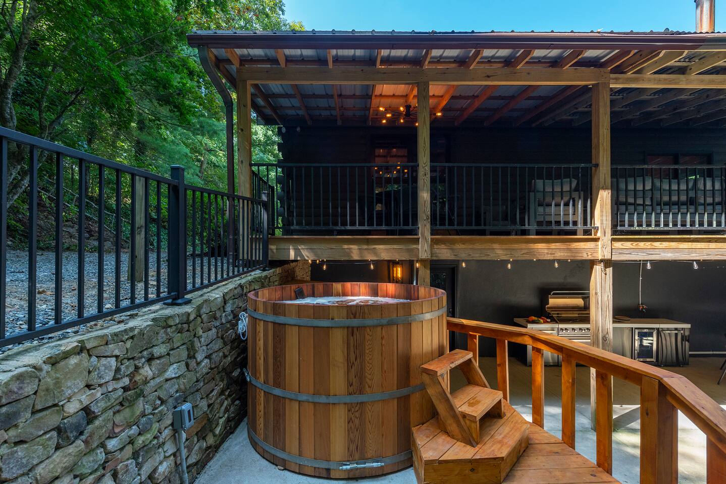Dreaming of the perfect mountain getaway? Kick back in this incredibly stylish log cabin style home nestled in the mountains with Cedar Hot Tub & Outdoor Kitchen. Perfect for a couples getaway or family retreat. Sleeps up to 12-4 bedroom + loft. Just 20 mins to Asheville Airport, 10 Mins to Hendersonville & 15 mins to the Pisgah Forest & Brevard. With 100’s of waterfalls & hiking trails just mins away, you’ll truly get your taste of all that the beautiful Blue Ridge Mountain Region has to offer.