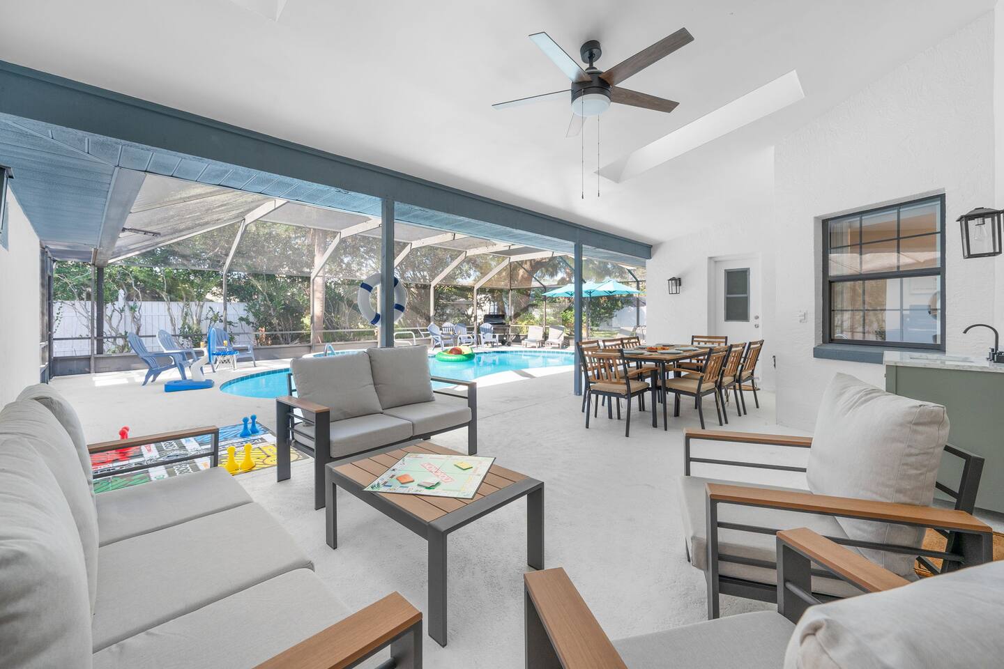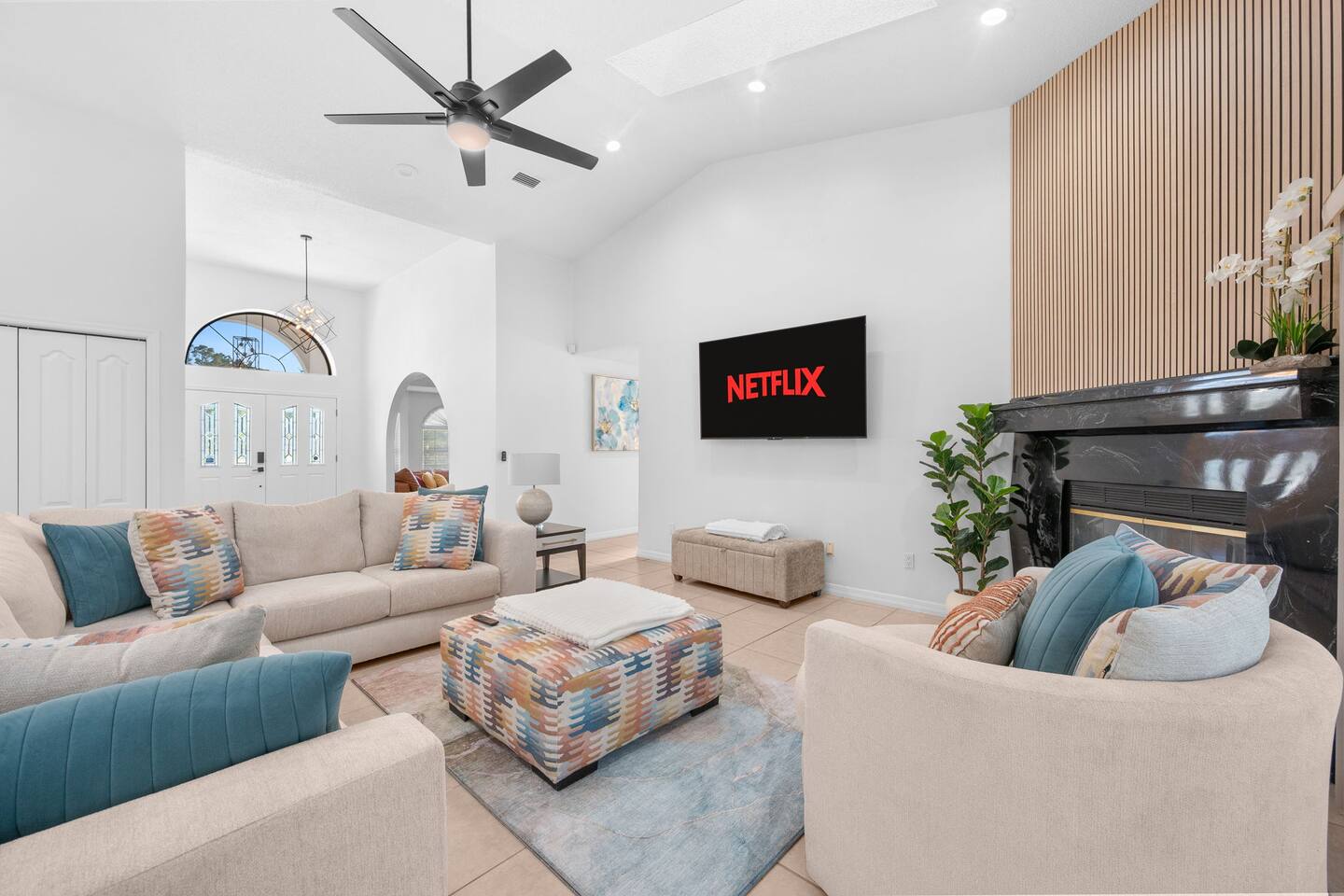 ⭐ Home Highlights 🏊 Large private pool 🏀 Backyard basketball hoop 🎱 Game room with pool table & foosball 🍳 Outdoor kitchen with charcoal BBQ 🔥 Outdoor living room lounge space 🍽 Outdoor dining area 🎲 Board games for family fun 🏡 Newly renovated modern interior 🍳 Massive fully stocked kitchen 🌴 Huge backyard perfect for games 🏖 Beach supplies for guest use 🏡 More About the Space 🛏 Master bedroom with spacious ensuite bathroom 🛏 Comfortable guest bedrooms for families and groups 🛋 Large open living room perfect for relaxing 📺 Smart TVs for streaming your favorite apps 🎱 Dedicated game room with pool table and foosball 🎲 Board games available for family game nights 🍳 Fully stocked kitchen with cookware and essentials 🌴 Large backyard designed for entertaining and relaxing 🔥 Outdoor seating area to enjoy evenings by the pool 🌴 Nearby Activities & Attractions 🏖 Flagler Beach – about 20 minutes away 🏌 Pine Lakes Golf Club – just minutes away 🚲 Palm Coast bike trails and parks 🐬 Dolphin and manatee watching along the Intracoastal 🛶 Kayaking and paddleboarding nearby 🎣 Fishing charters and boat rentals 🌅 Scenic drives along A1A 🏛 Historic St. Augustine – about 30 minutes away 🛍 European Village shops and dining 🌴 Washington Oaks Gardens State Park 🍴 Top Local Restaurants 🍝 Osteria Rustica Italian 🍖 Captain’s BBQ 🍤 Atlantic Grille 🍸 Next Door Beach Bistro & Bar 🍤 Tortugas Kitchen & Bar 🥞 Rodie’s Place (great breakfast spot) 🍕 Bronx House Pizza 🍩 Swillerbees Donuts