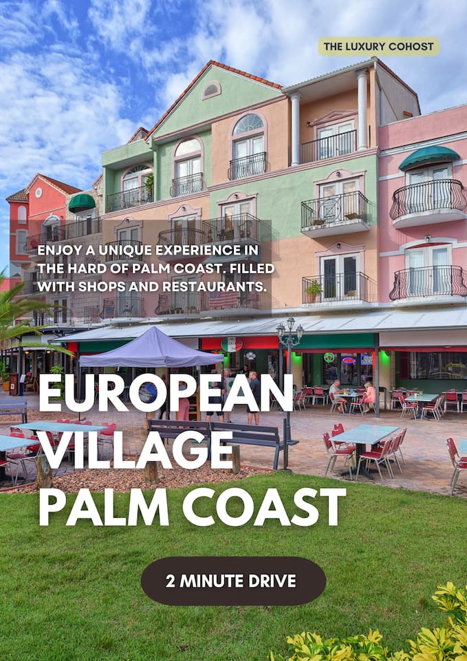 Walk across the street to European Village or hop directly onto the bike path. A car is recommended for beach trips and exploring Flagler Beach or St. Augustine.